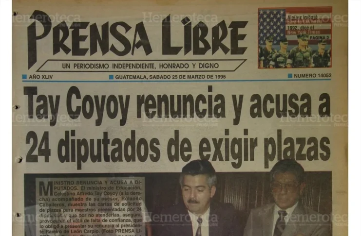 Tay Coyoy, quetzalteco, falleció el jueves 23 de enero, fue ministro de Educación durante el gobierno de Ramiro de León Carpio, nombrado presidente de Guatemala en marzo de 1993 luego de la destitución de Jorge Serrano Elías. Redacción/alprensadeoccidente.com.gt Celestino Alfredo Tay Coyoy fue el primer indígena de Xela en ser Ministro de Educación, y noticia … Sigue leyendo Celestino Alfredo Tay Coyoy dejó huella en la historia de Guatemala