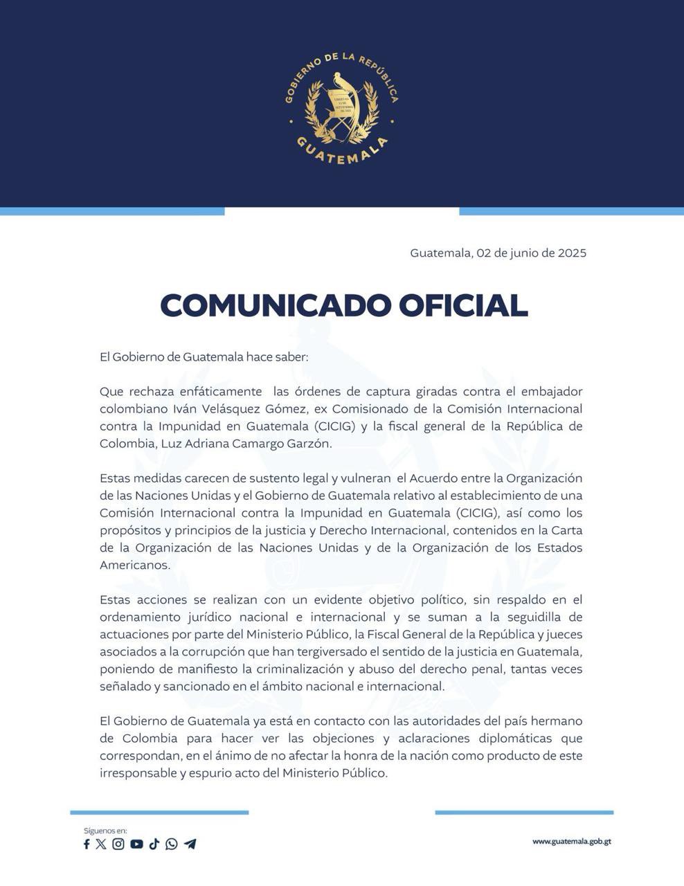 Comunicado del Gobierno de Guatemala