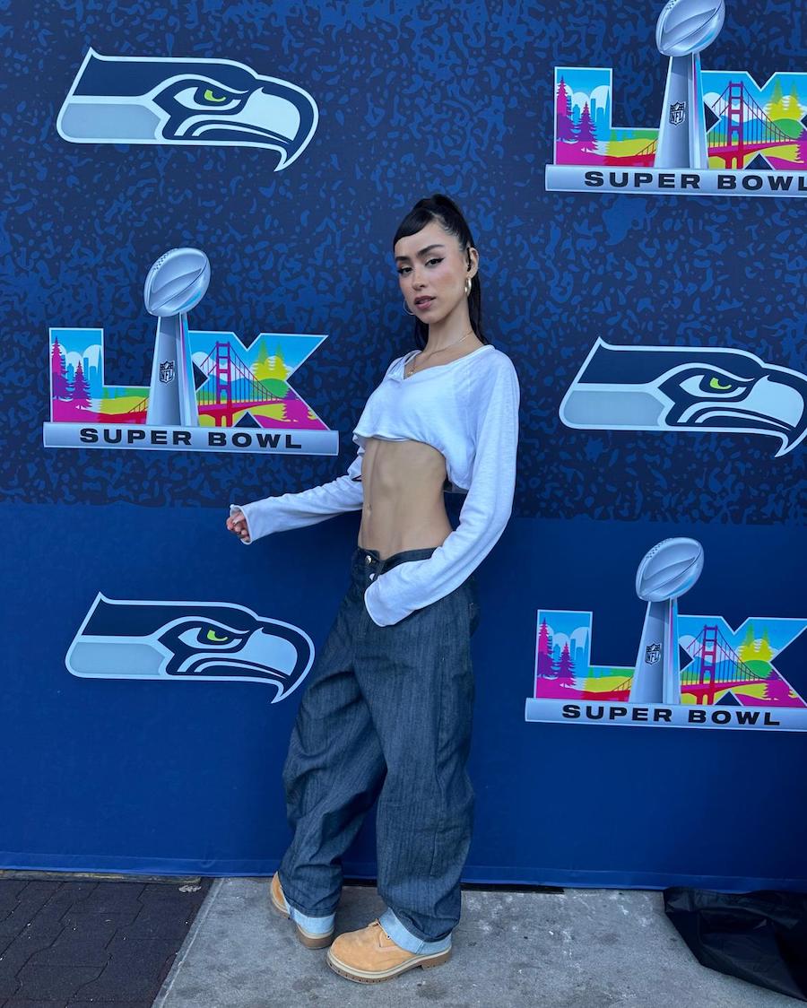 La artista guatemalteca Marcela Flores Calderón, de 33 años, integró el espectáculo de medio tiempo del Super Bowl y participó en el show encabezado por Bad Bunny ante millones de espectadores en todo el mundo.