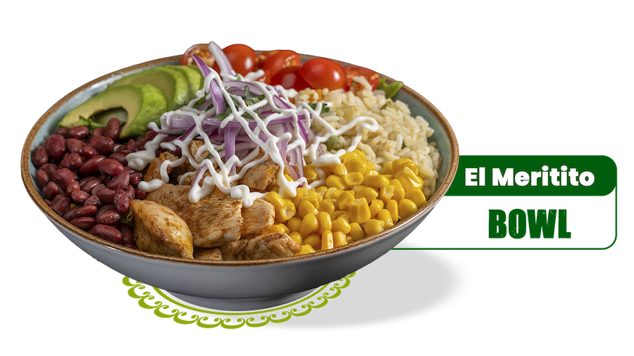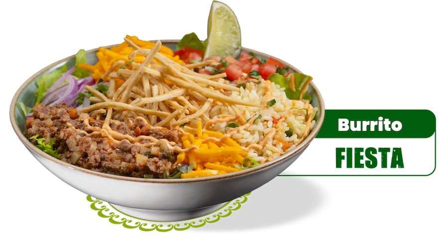 De igual forma, este bowl presenta la esencia del clásico burrito en una versión más práctica. Combina arroz, lechuga y picadillo de res con chipotle, acompañado de crema, pico de gallo, cebolla morada y queso cheddar. El platillo se completa con tiras de tortilla de harina, cilantro fresco y aderezo mayo-chipotle.