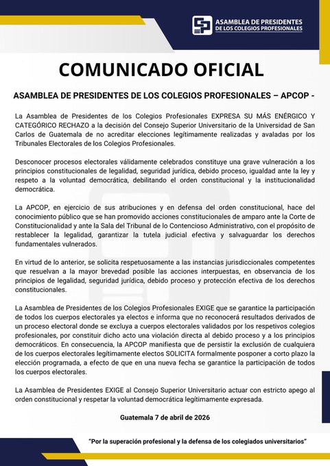 El organismo advirtió que una elección bajo estas condiciones podría profundizar la crisis en la USAC, generar nuevas disputas legales y afectar la credibilidad de la universidad, cuya participación resulta clave en el sistema democrático del país.