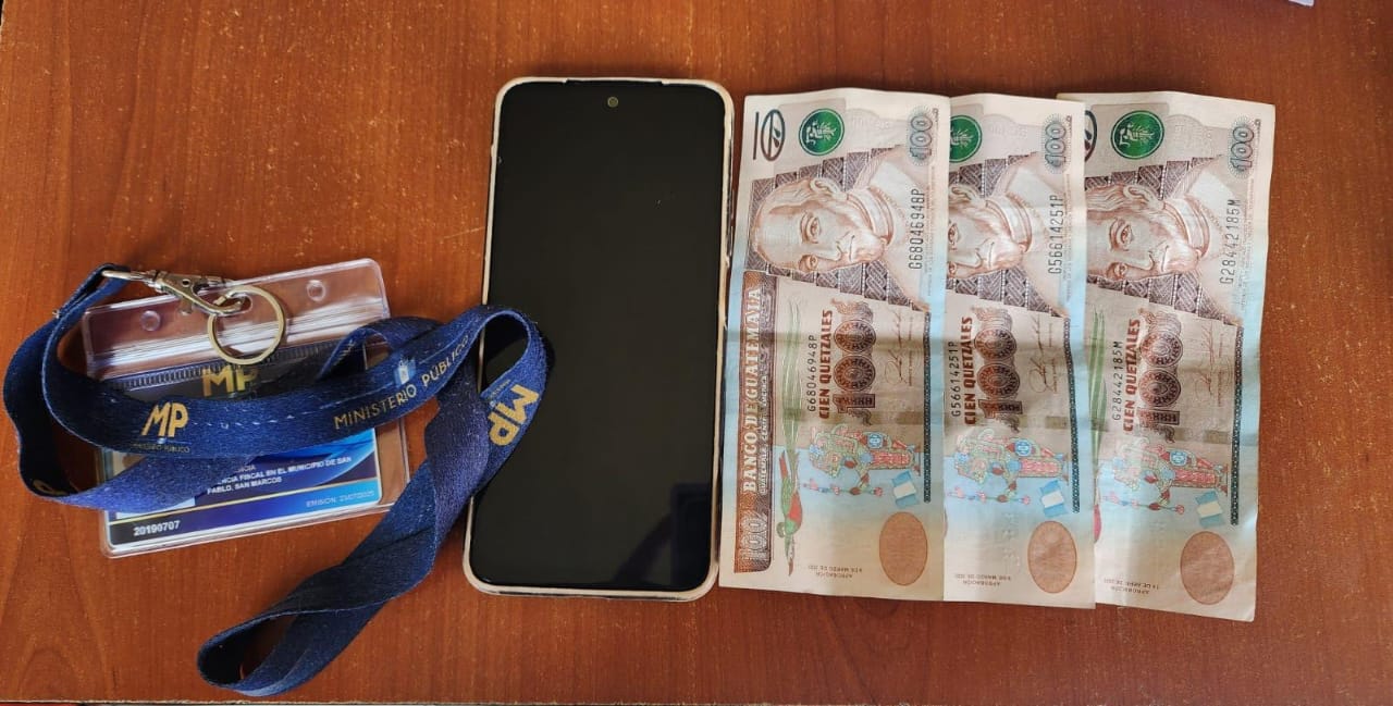 Durante el operativo, se incautaron los Q300 en efectivo, dos celulares y un gafete del Ministerio Público a nombre del sindicado.