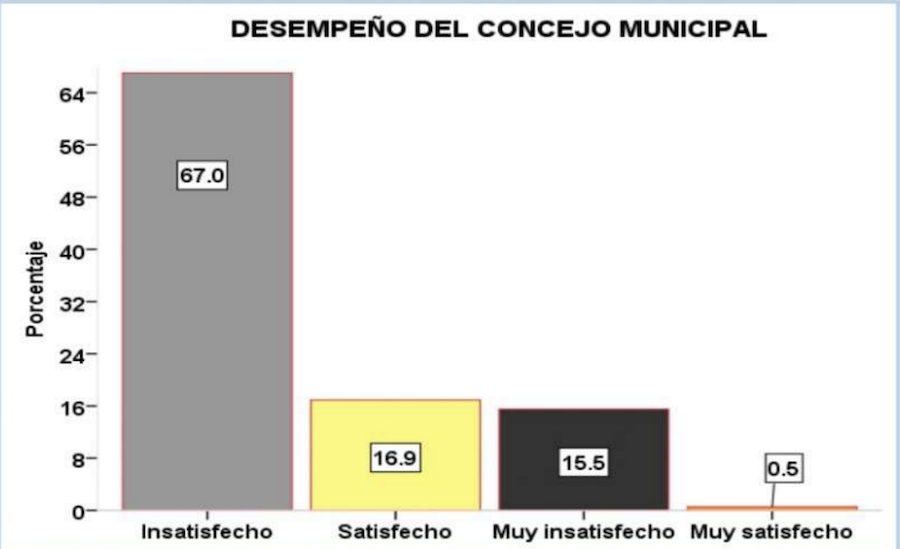 Por otra parte, el estudio revela que la mayoría de los ciudadanos está insatisfecha con el desempeño del alcalde Juan López y su concejo municipal. La percepción general es que su segundo período mantiene a la ciudad “igual o en retroceso”.